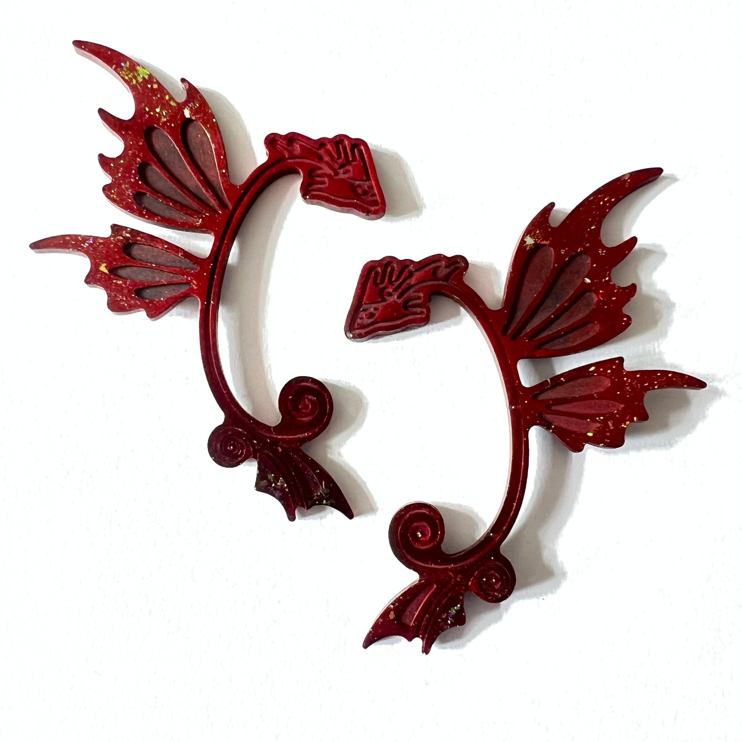 Resin ear cuffs are an amazing addition to your cosplay, concert outfit, LARP character costume, or for any occasion! Every pair is unique as they are hand poured and made only one pair at a time.