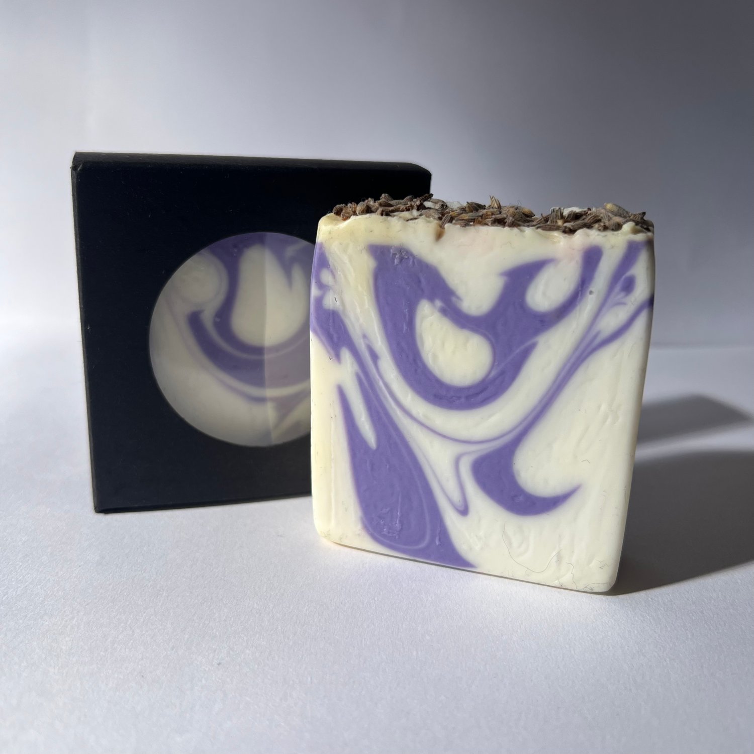 Ingredients: Olive oil, coconut oil, castor oil, lavender hydrosol, saponifying agent (sodium hydroxide), skin safe colourants and essential oil, sodium lactate (liquid salt), lavender buds.